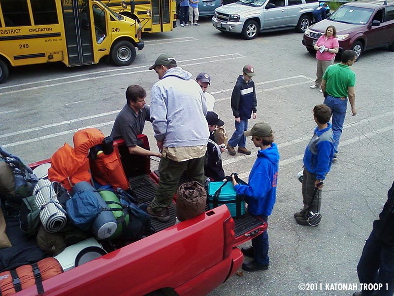 We meet at the Katonah Elementary School parking lot on Friday afternoon to load up our gear.